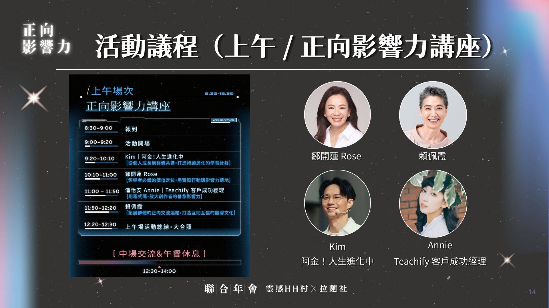 Newsletter 2025/12/8#聯合年會實用攻略 重點摘要 📌 本期重點內容: 1. 年會下午的跑桌活動是什麼? 2. 跑桌有哪些主題?桌長是誰? 3. 跑桌前如何事前準備,才能獲得最大效益? Hi, Reader 感謝你持續關注靈感日日村! 相信各位和村長們一樣,經歷了一年豐富的旅程,時間彷彿快轉一般終於迎來12月啦!🌟 在 2025 年的結尾,除了回頭望向今年經歷的種種,在 12/28 靈感日日村和拉麵社的聯合年會上,雖然僅是短短的一日活動,在迎向新的開端前,期盼能藉此帶給各位展望 2026 年的勇氣及正向影響力 💪 接下來在這個單元,我們將會一一介紹聯合年會裡的領航講者、跑桌進行方式、如何進行QA提問、年會支線任務玩法...等,期盼能讓你在參加12/28的年會後,將這些收獲帶走並應用在新的一年裡! \一起來年會探索你的正向影響力/ 👉席位有限,手刀報名 1. 年會下午的跑桌活動是什麼? 年會裡的「跑桌活動」設計,是每張桌子都有一位桌長,在限定時間內,參與者們可向桌長提問,並針對特定主題進行深入的討論。...