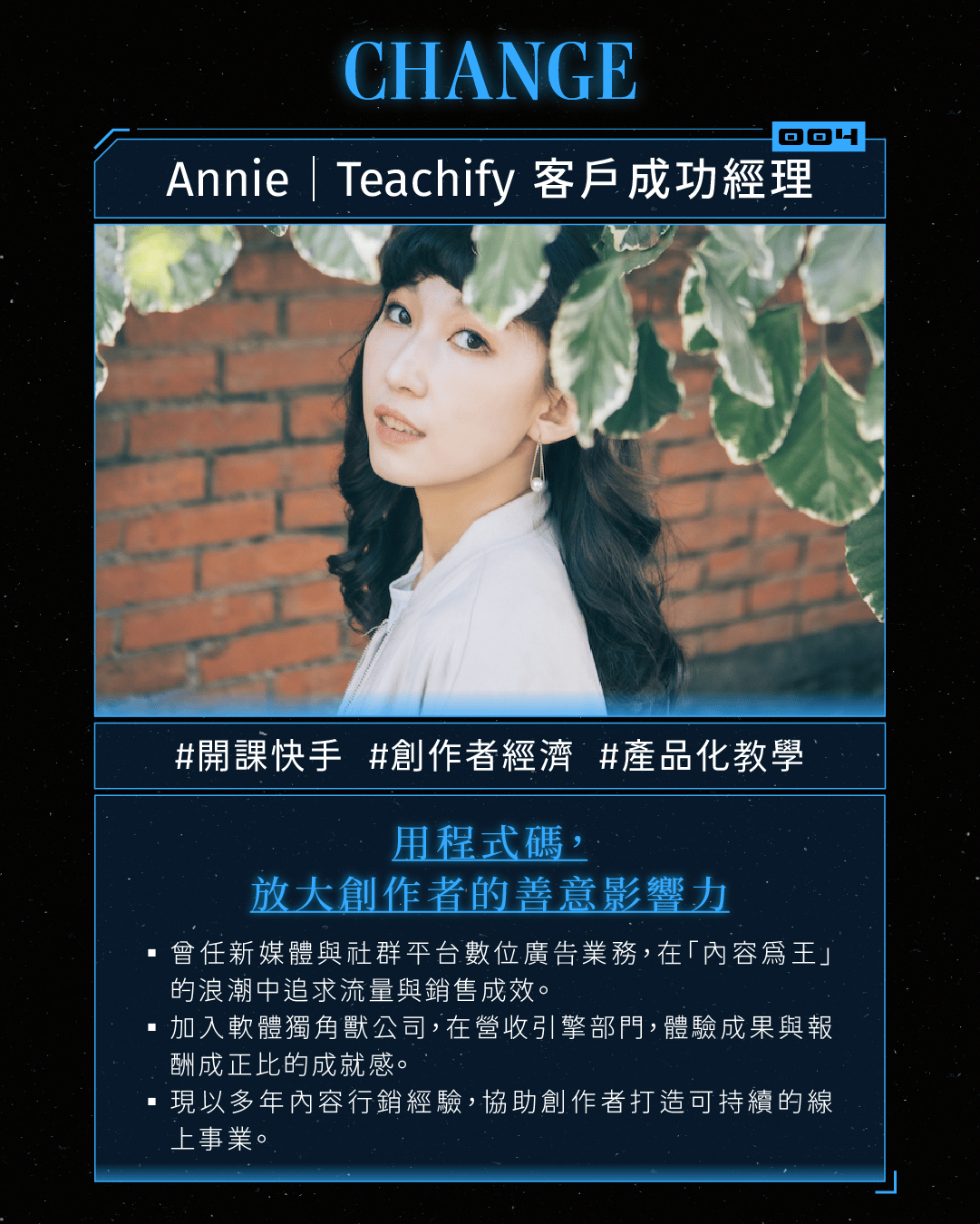 Newsletter 2025/12/10#聯合年會合作夥伴 重點摘要 📌 本期重點內容: 為什麼我們選擇 Teachify? Teachify 使用心得 Hi, Reader 在這次 12/28 的年會裡,我們很榮幸能邀請此次年會的首席合作夥伴-Teachify 來到現場! 在上午的座談中,邀請到 Teachify 的客戶成功經理-Annie 將帶來「用程式碼,放大創作者的善意影響力」主題外,Teachify 的夥伴們也將會實際到年會的攤位區,與各位近距離互動! 如果你對於打造線上產品有興趣,仍在猶豫該使用哪個系統,或在 Teachify 使用上有遇到任何疑問,不妨到年會 Teachify 的攤位上,讓夥伴們協助你解惑吧! 本次聯合年會特別感謝榮譽村長 Teachify 熱情贊助 Teachify 開課快手 於 2019 年誕生於對創作者經濟的深刻觀察。 Teachify 相信,科技與網路能讓知識自由流動,帶來更多靈感與改變;而創作者也能在分享與教學的過程中,發揮專業與熱情,建立品牌並獲得合理收益,不再被繁瑣流程或平台抽成束縛。 帶著這份信念,Teachify...
