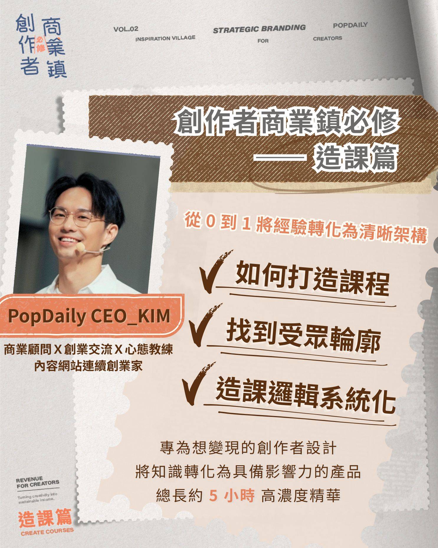 #日日村活動快遞 在2025年11月,由村長 Kim 帶領的 實體工作坊—造課篇 順利劃下句點後,在眾多厝邊們敲碗下,我們決定開啟一個線上版本! 你是否也常覺得,腦中明明有無數實戰經驗,卻始終不知道該如何將它們系統化?看著身邊的人陸續開課,你可能會擔心:「我真的夠資格教人嗎?」或「該從哪裡開始?」 不少想打造有價課程的知識輸出者,最常犯的錯誤是先埋頭造課,才去尋找需求。 而此次在「創作者商業鎮必修 — 造課篇」中,Kim 將引領你翻轉思維! 從如何造課、解決方案的設計到命名定價...等,系統化地帶你「從 0 到 1 打造你的有價課程」! 造課篇內容安排 「創作者商業鎮必修 — 造課篇」預計約 5 小時 的高濃度實戰課 課前 1.5 小時前導影片:造課概要 課間 2 小時 系統拆解:定位、課綱到單元設計,完整流程一次帶走 課後約 1~2 小時 實作 QA:實際解決你造課路上常見的卡關點 此堂課將協助你: ☑️ 找到受眾輪廓:不只是年齡與收入,更要看透受眾背後的心理輪廓與行為特性 ☑️ 造課邏輯系統化:將知識提煉成「原理 → 步驟 → 範例 →...